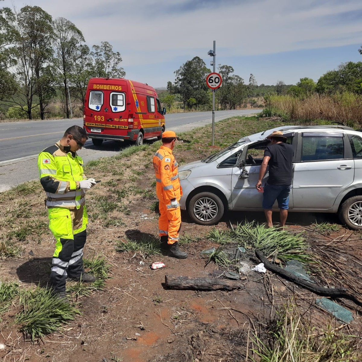 Três pessoas ficam feridas após carro capotar na BR-354 em Formiga