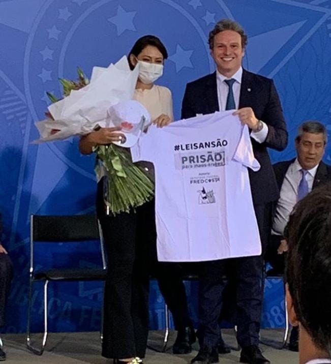 O presidente disse que a primeira-dama, Michelle Bolsonaro, foi responsável por apoiar a sanção do projeto. O deputado federal Fred Costa (Patriota-MG), autor do projeto, lembrou da postagem da primeira-dama, apoiando a sanção da nova lei, e disse que foi como um "gol de Copa do Mundo".