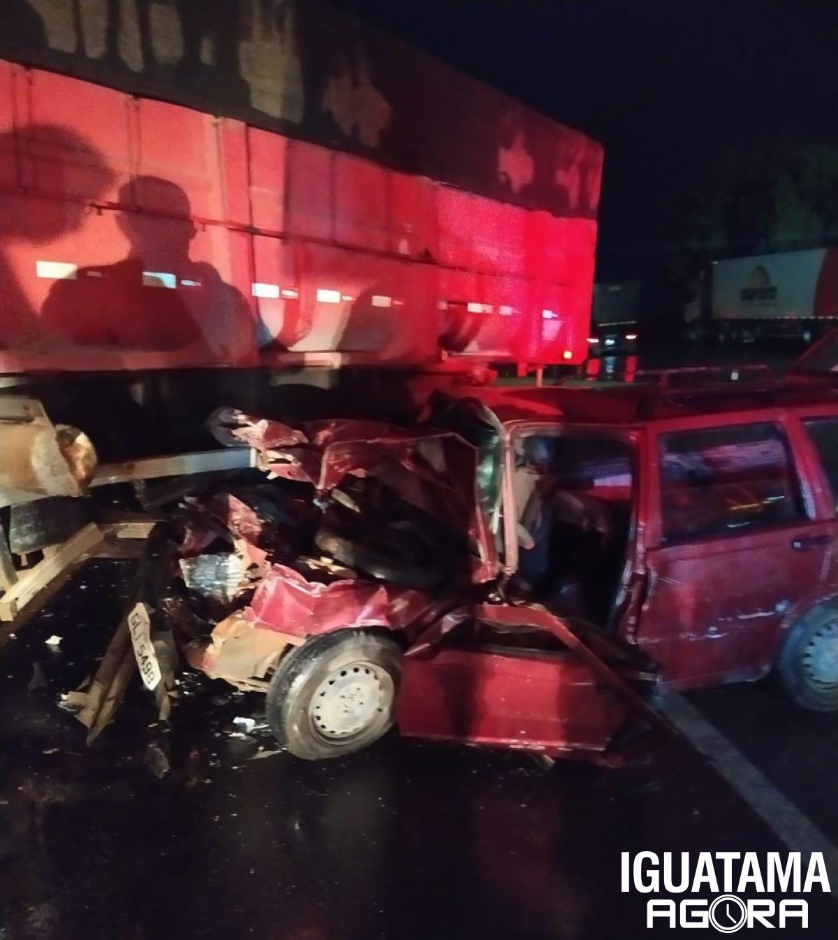 Conforme apurado com o Corpo de Bombeiros, o Fiat Elba com placas de Iguatama seguia no sentido Arcos á Iguatama, e colidiu com a última composição da carreta rodotrem, que saía de um posto de combustíveis às margens da rodovia.
