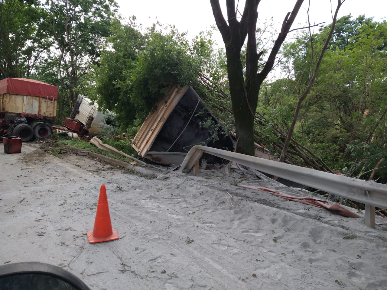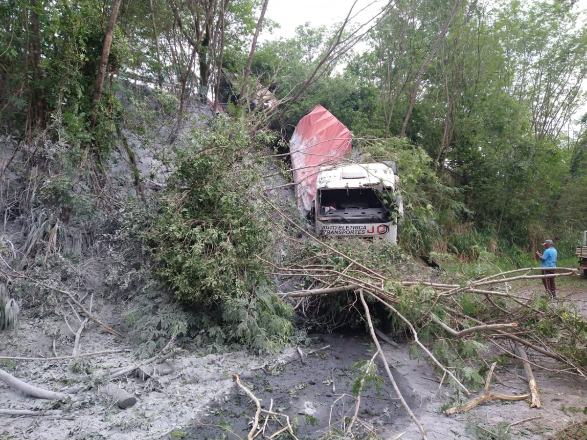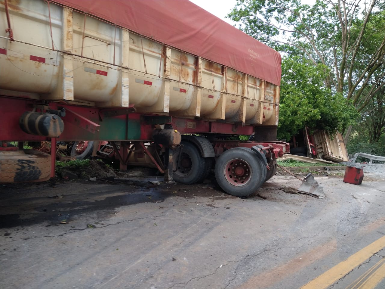 A outra carreta parou às margens da rodovia e o motorista não se feriu. O trânsito ficou lento no local até a retirada dos veículos.