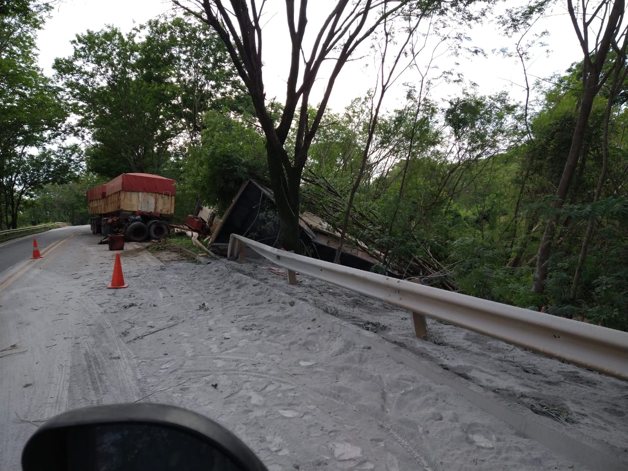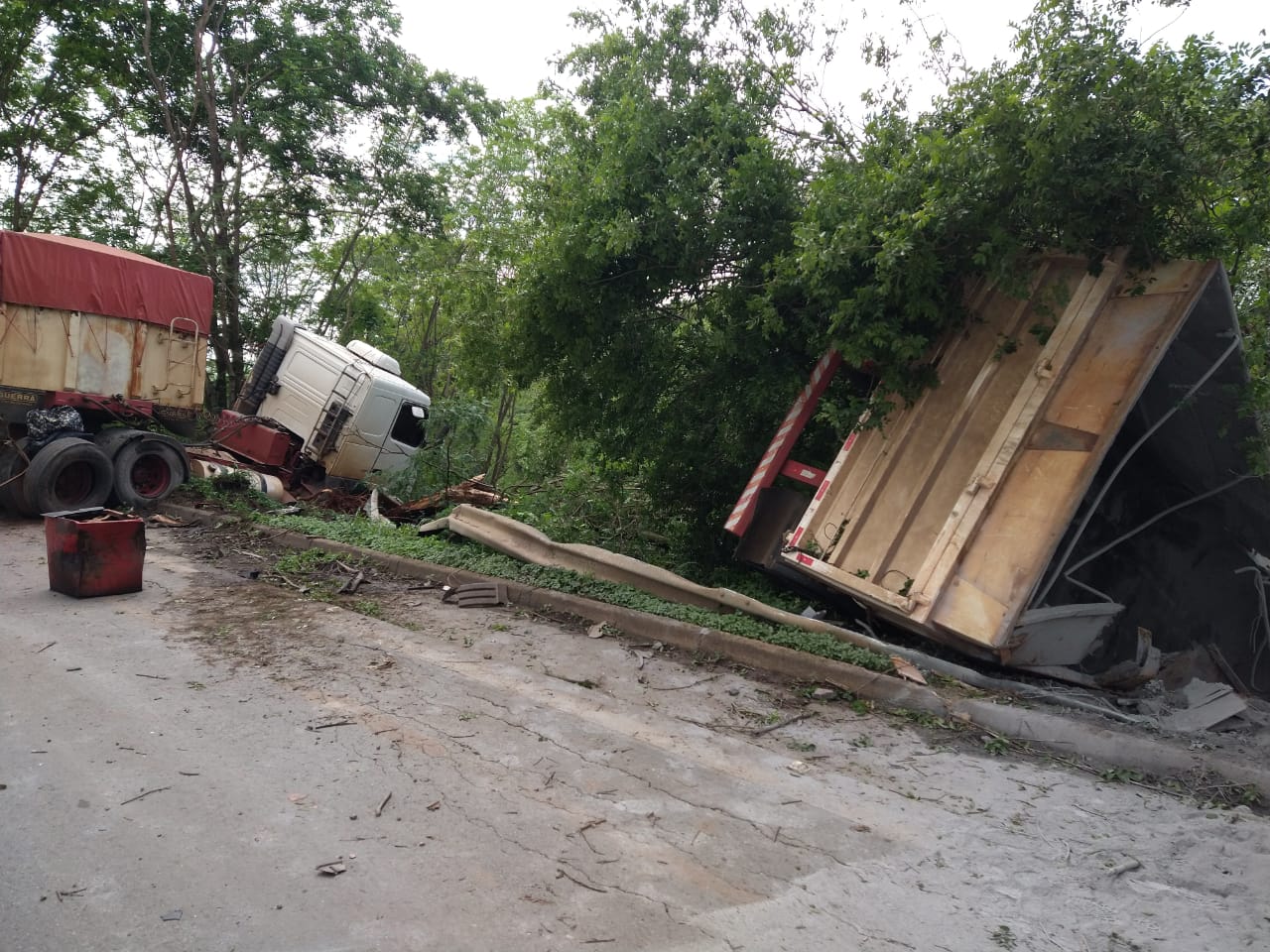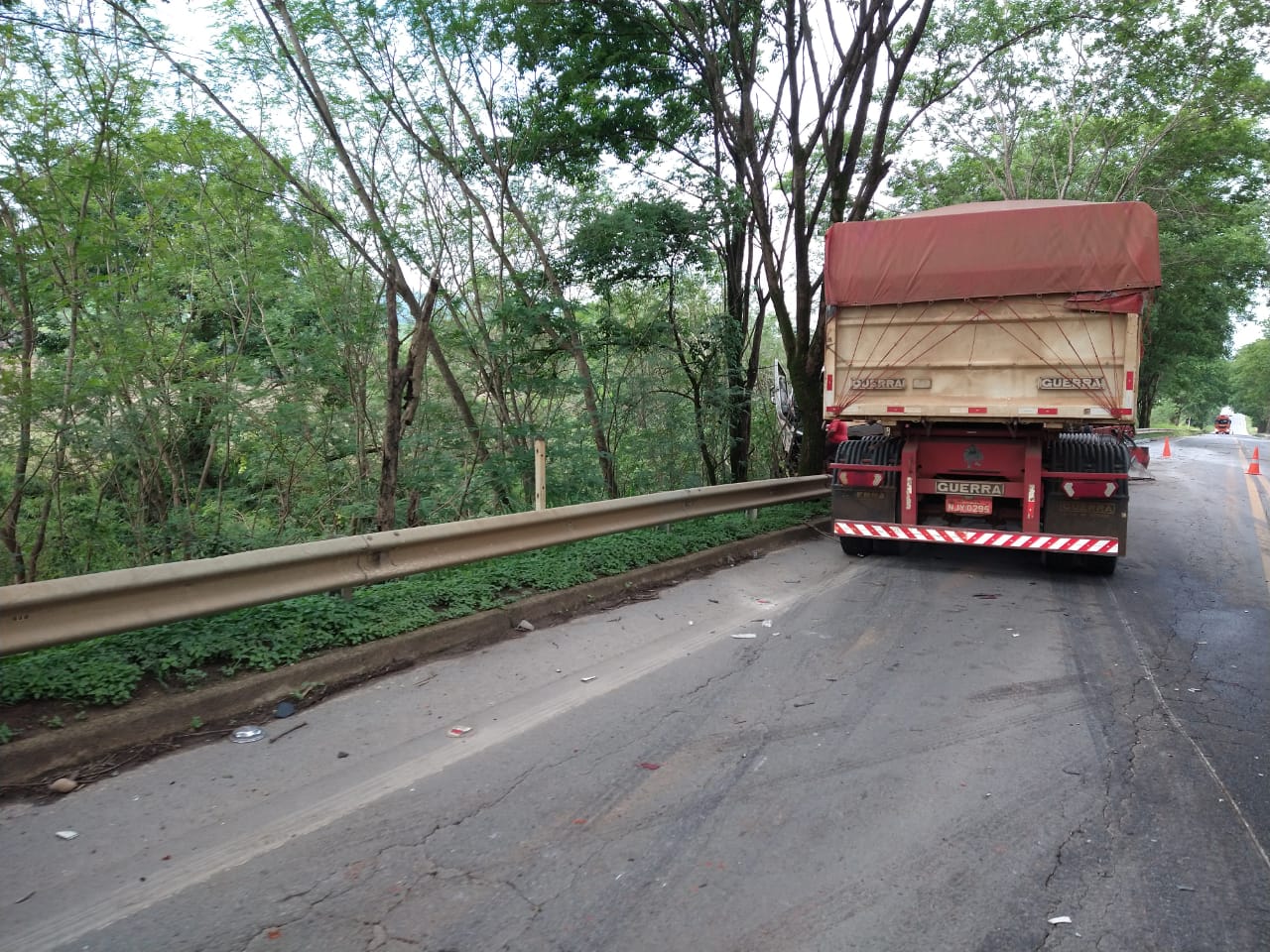 A outra carreta parou às margens da rodovia e o motorista não se feriu. O trânsito ficou lento no local até a retirada dos veículos.