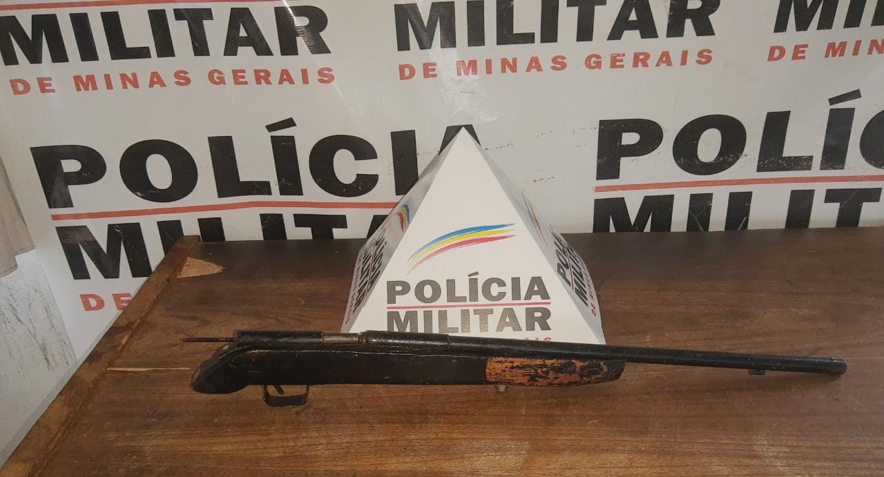 Ainda no sábado (11), por volta das 09 horas, a PM compareceu ao residencial Hilda Borges de Andrade, onde uma mulher de 21 anos relatou que sofria agressões constantes do companheiro e que decidiu acionar a polícia por causa de uma espingarda que ele possuía, entregando a arma aos militares. O cidadão fugiu do local antes da chegada da viatura. A arma de fogo foi apreendida, o infrator foi identificado e a vítima devidamente orientada sobre as providências a tomar.
