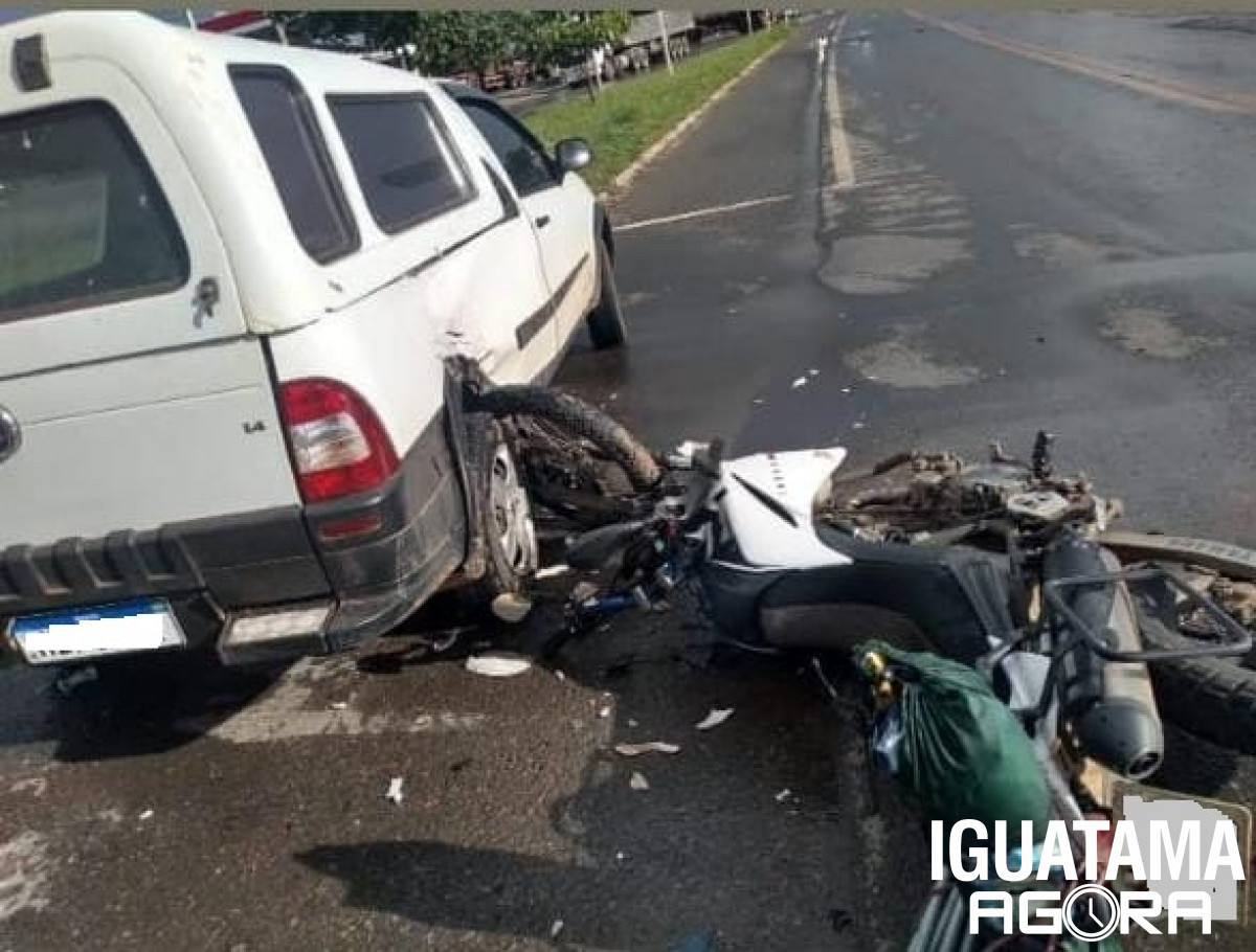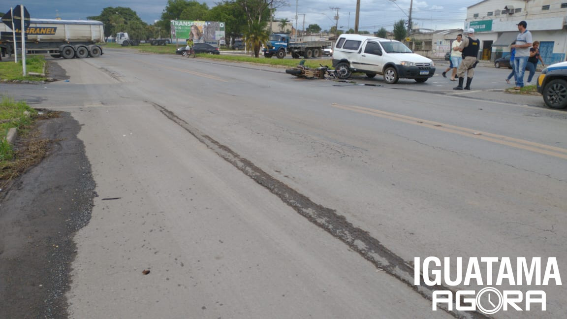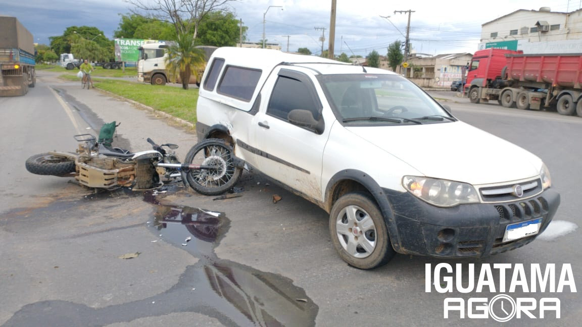 Uma colisão transversal envolvendo uma motocicleta Yamaha/XT660R emplacada em Iguatama e uma caminhonete Fiat/Strada da cidade de Moema, foi registrada pela Polícia Militar Rodoviária na tarde de segunda-feira (04), na altura do Km-473, na BR-354 em Arcos, por volta das 16h50.