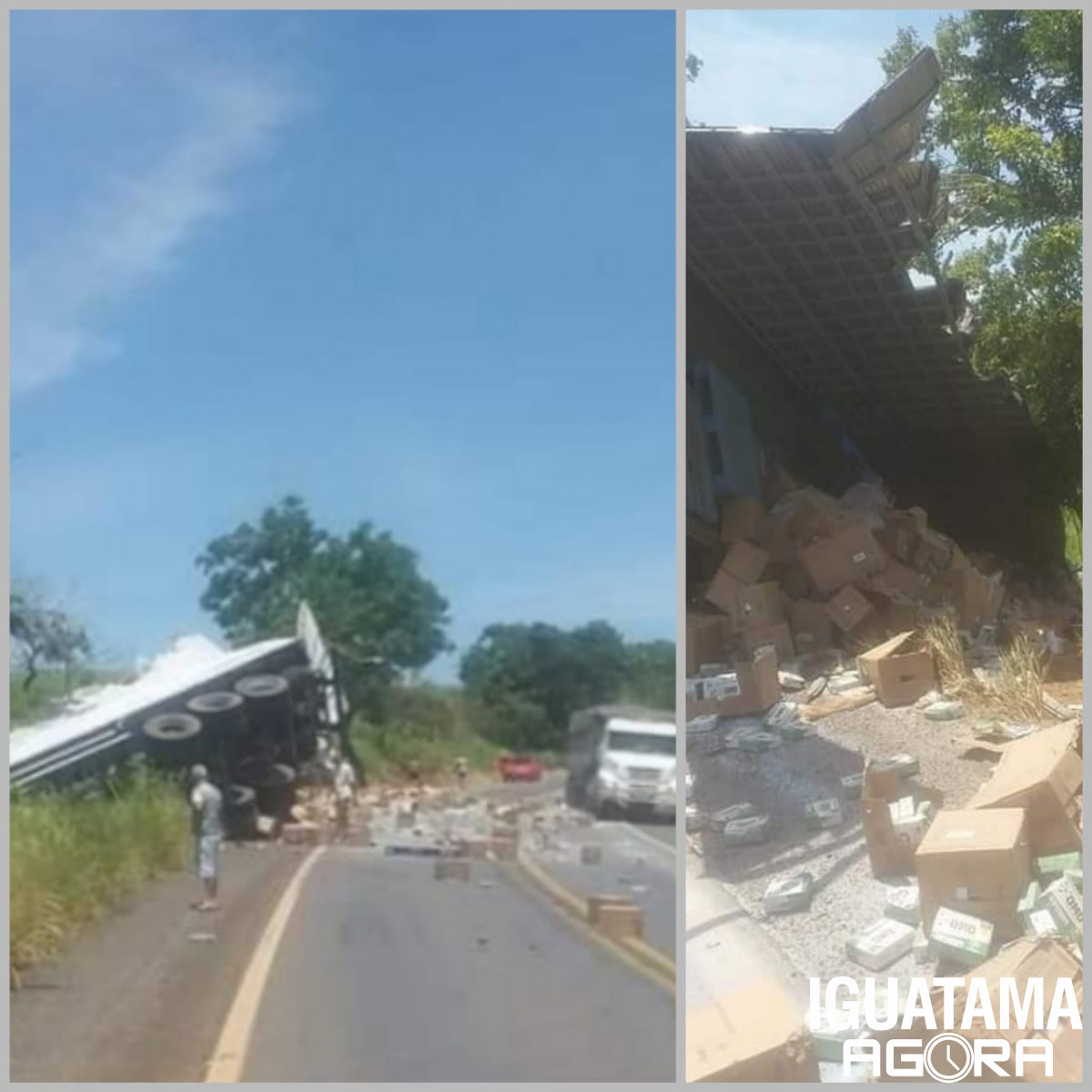 Parte da carga ficou espalhada pela rodovia.O motorista que estava sozinho não chegou a falecer na hora, mas não aguentou os ferimentos e chegou a óbito minutos depois.