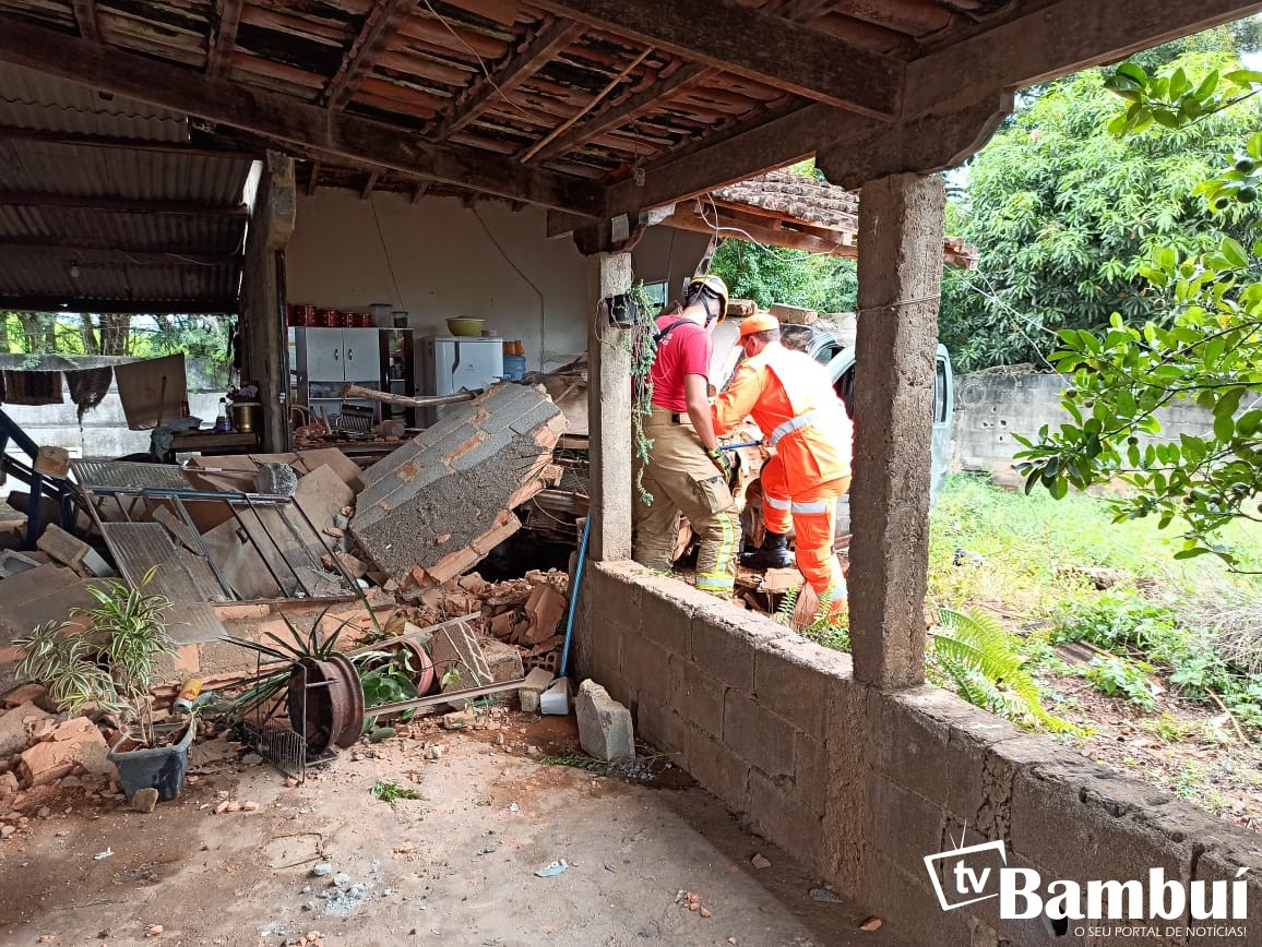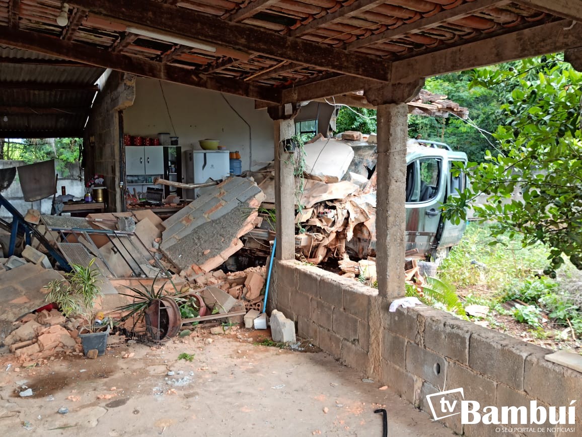 Já sem controle, o veículo invadiu um quintal e colidiu contra a cozinha de uma residência. No momento do acidente haviam 6 pessoas no interior da residência, entre elas um bebê de 7 meses.