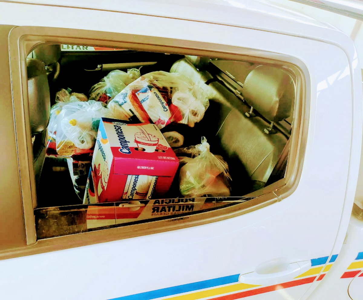 Em menos de um mês, policiais militares que servem em Arcos conseguiram, com o apoio de vários parceiros, reunir 10 caixas de leite e 70 cestas básicas contendo itens de higiene pessoal e alimentação para serem distribuídos a famílias que estão passando por dificuldades nesta época de pandemia.