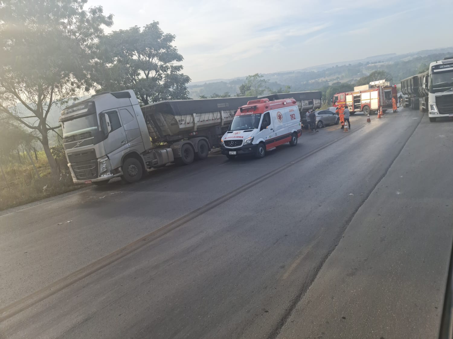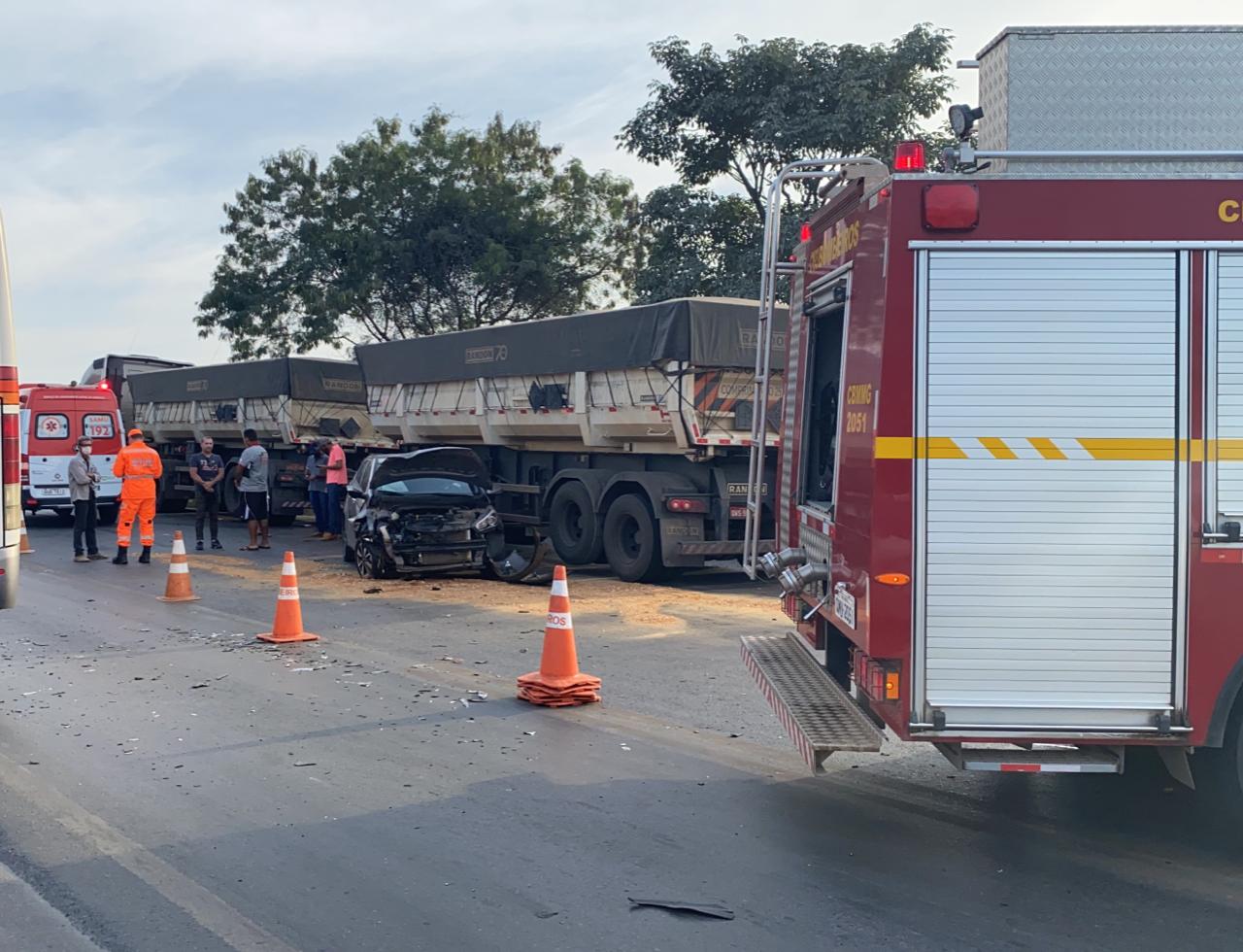 Segundo os condutores, o veículo HB20 seguia sentido Formiga quando a carreta que seguia sentido oposto fez uma conversão a sua esquerda para entrar em uma empresa de cal. O Veículo HB20 não conseguiu frear e colidiu na roda traseira da carreta, após a colisão o veículo rodou na pista e colidiu em uma carreta bi-trem que seguia sentido Arcos.