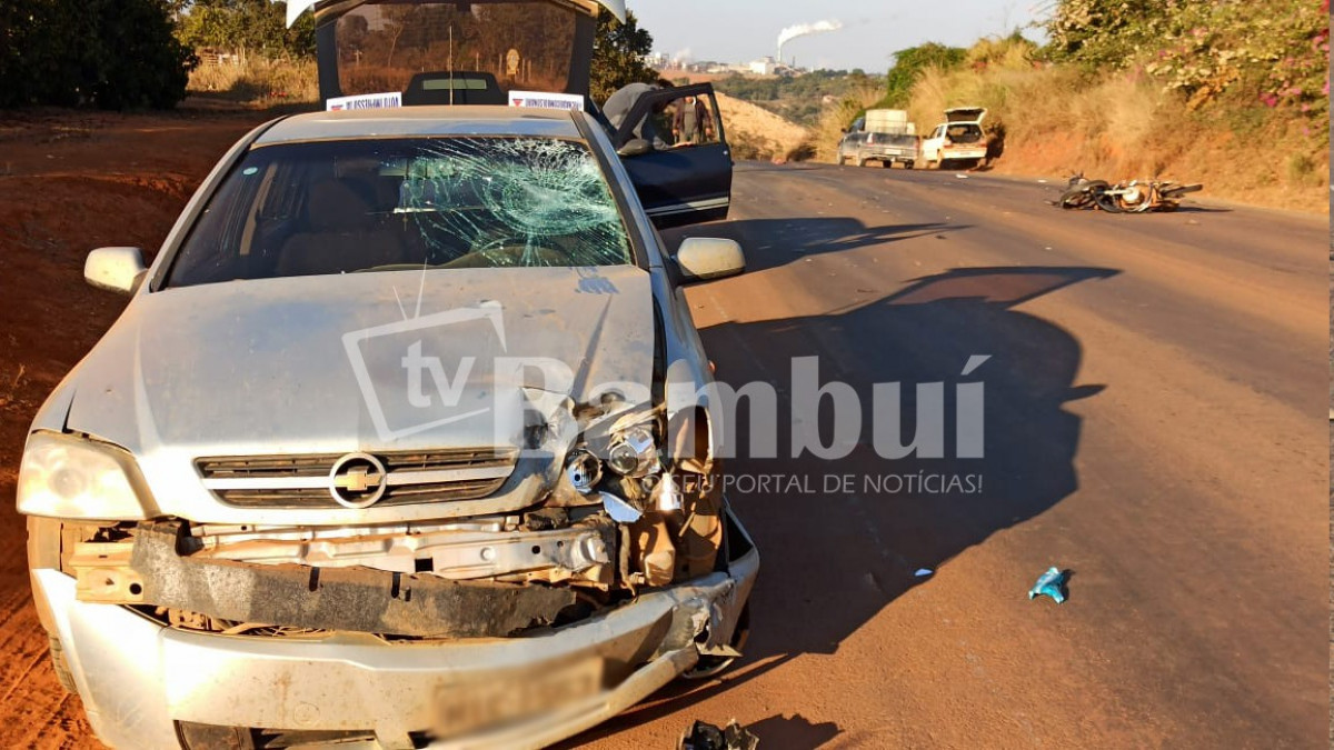 Outro veículo, com placas de Bambuí/MG, que seguia logo atrás da motocicleta, também foi atingido. Os condutores dos veículos não sofreram ferimentos.