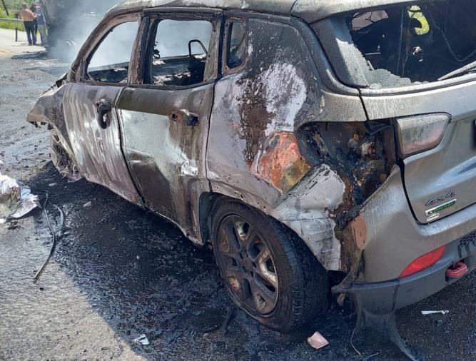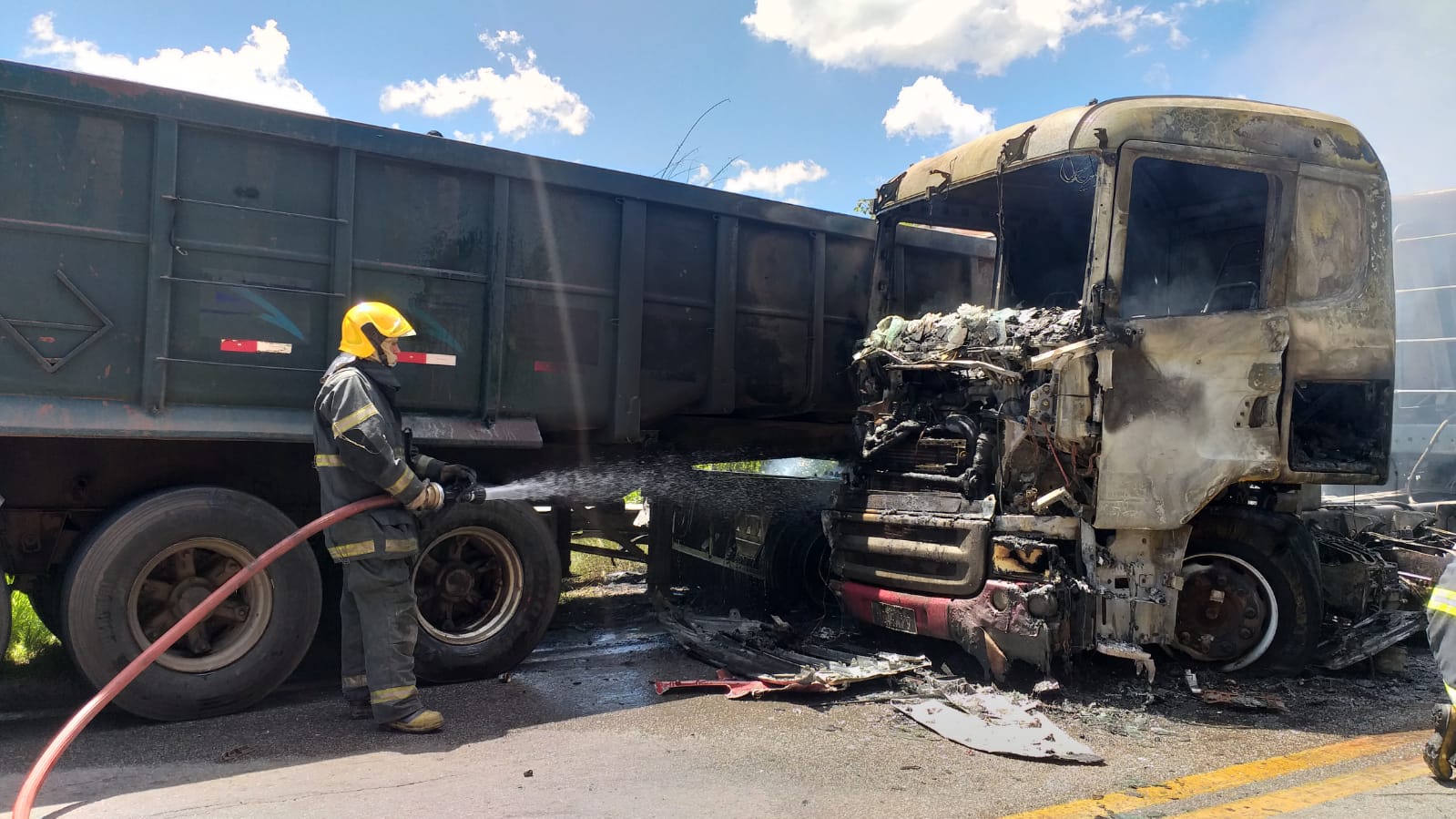 Uma guarnição do CBMMG permaneceu no local para as atividades de rescaldo do incêndio. A perícia foi acionada e realizou os trabalhos periciais. Pista interditada nos dois sentidos.
