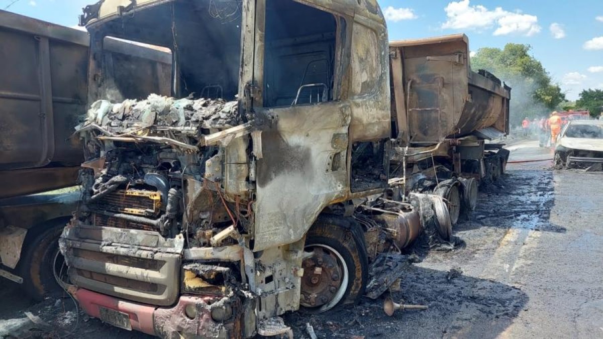 As primeiras informações do Corpo de Bombeiros foi que a colisão envolveu um carro de passeio uma moto e dois caminhões. O carro de passeio atingiu a motocicleta e em seguida um caminhão que também seguia no trecho desviou do acidente e acabou batendo de frente com outro caminhão que seguia no sentido contrário. A colisão provocou explosão e fogo intenso.
