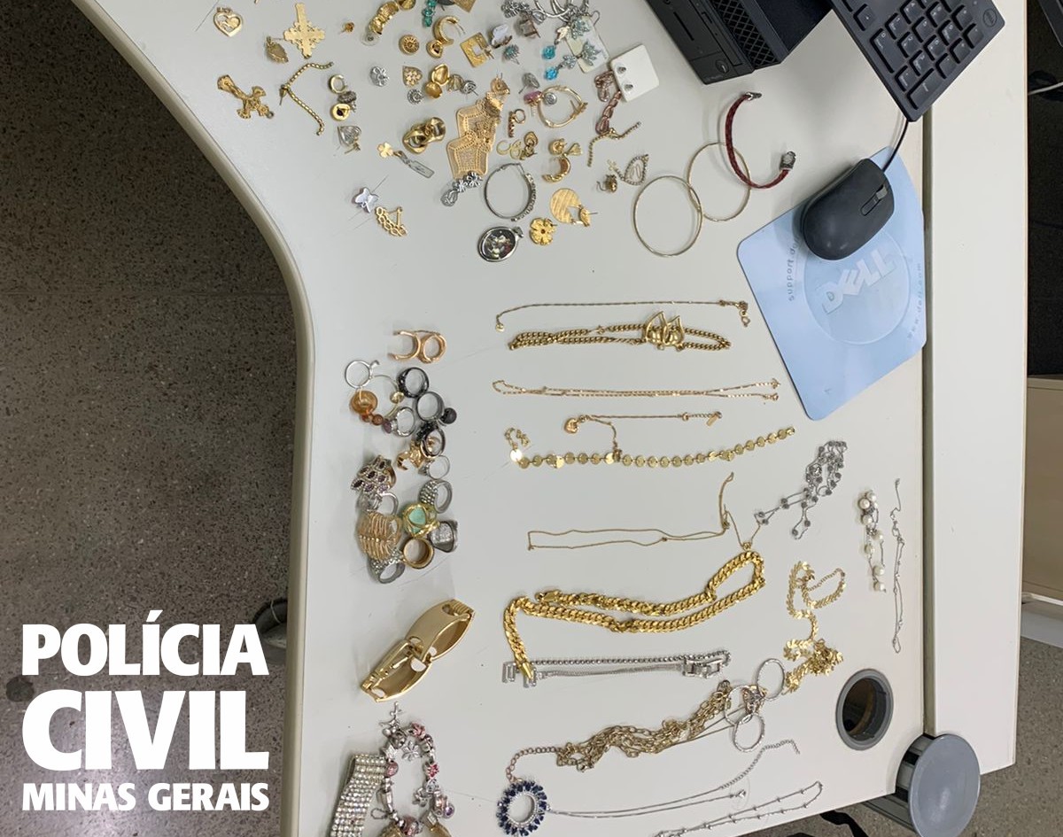 Com o investigado, os policiais civis apreenderam R$2.950 em espécie, 21 folhas de cheque no valor aproximado de R$120 mil, quatro notas promissórias de quase R$ 4 milhões, um óculos de grife, 248 joias, entre colares, anéis, brincos, braceletes, pulseiras, além de cinco relógios de grife e 56 semi-joias diversas.
