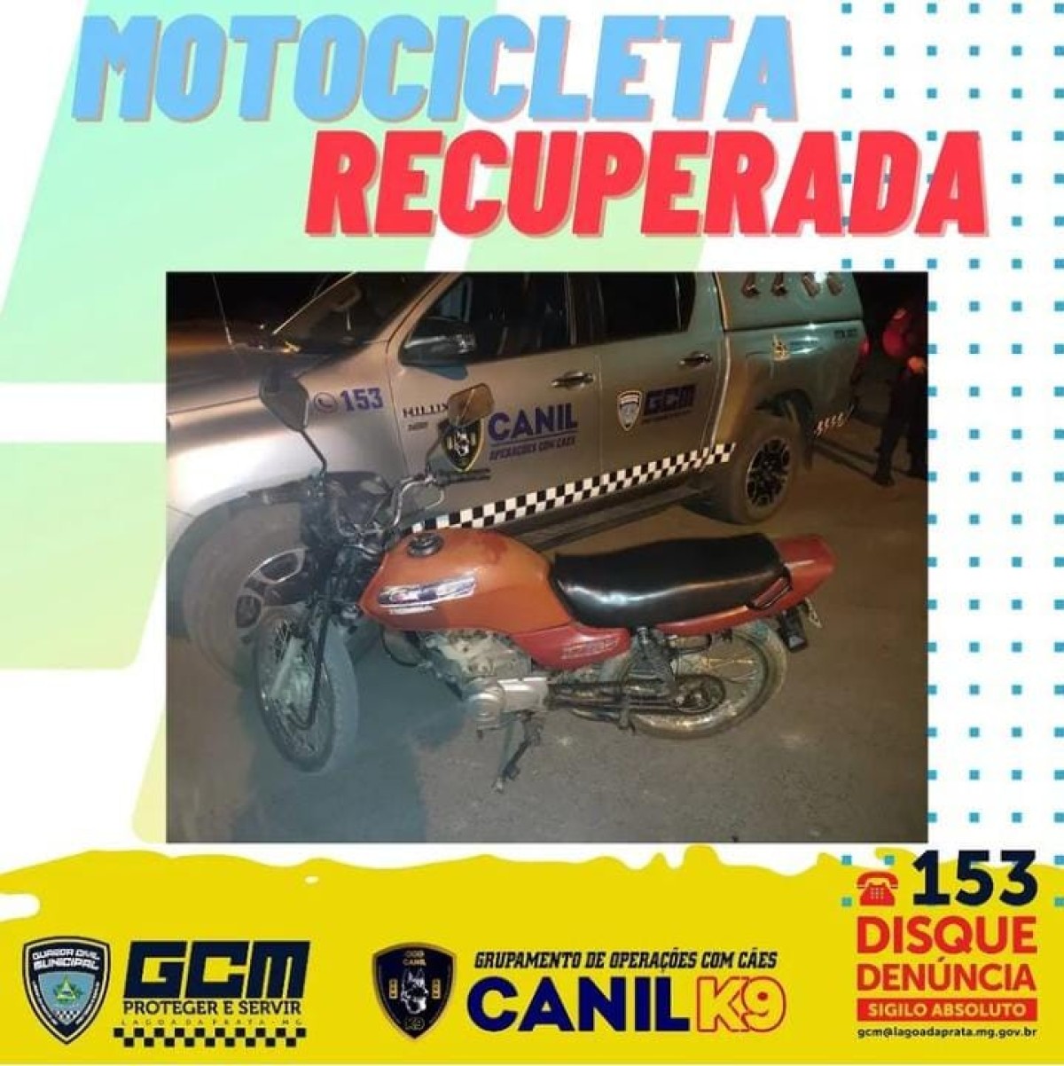 Nesta sexta-feira (27/05), as equipes da GCM foram informadas que uma motocicleta Honda CG Titan 125, de cor vermelha, furtada em data pretérita de 17/05/2022, estaria circulando por vários bairros da cidade de Lagoa da Prata, possivelmente sendo utilizada para tráfico de drogas.
