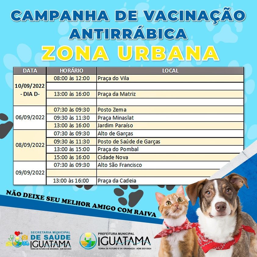 A Campanha de vacinação contra a raiva em Iguatama já foi iniciada, e os animais da zona urbana estarão sendo imunizados à partir de amanhã terça-feira (06).