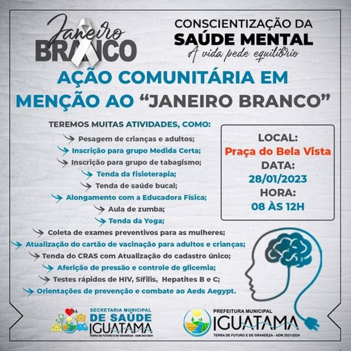 Pensando nisso a Secretaria Municipal de Saúde de Iguatama fará uma manhã de muitas atividades em benefício da saúde de nossos munícipes!
