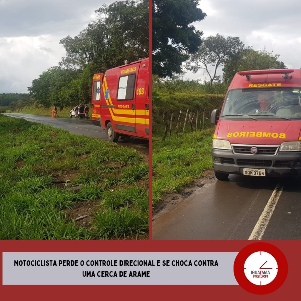 A vítima de 70 anos de idade estava em pé junto ao acostamento, queixando de dores no tornozelo e dorso, segundo ele, devido a chuva que caía, fez com que ele perdesse o controle direcional de sua motocicleta que se chocou contra uma cerca de arame.