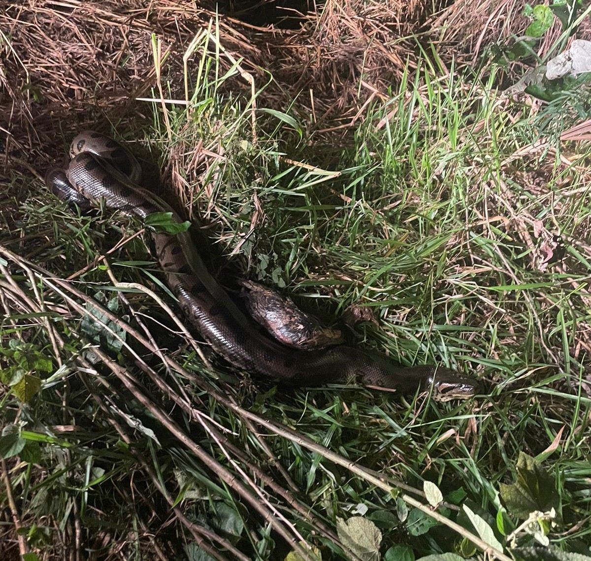 Ao chegar ao local, os bombeiros se depararam com uma serpente da espécie sucuri, encontrada dentro de um freezer e estimada em cerca de 4 metros de comprimento. Segundo relatos do senhor João Duarte, o réptil teria atacado e engolido uma de suas galinhas, sendo encontrada próximo à residência após o incidente.