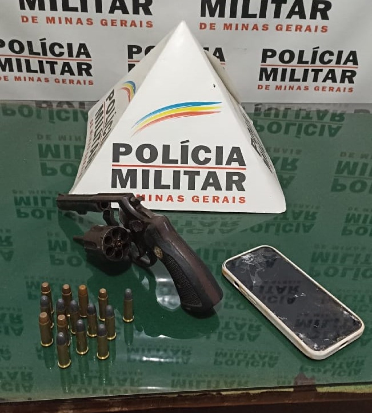 Após parlamentação, o autor indicou onde estaria uma arma de fogo e mais munições, sendo encontrados e apreendidos logo em seguida um revólver calibre 38 e outras quatro munições do mesmo calibre.