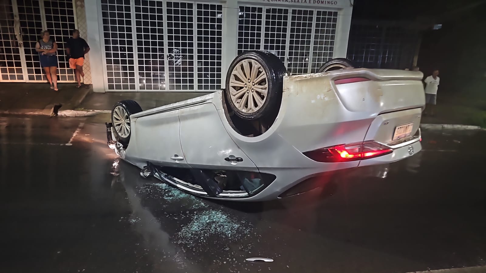 No fim da noite de ontem (03), pouco antes da meia noite, a PM foi acionada a comparecer à avenida Magalhães Pinto, altura dos bairros Brasília e Sion, onde um acidente de trânsito havia ocorrido, deixando duas pessoas feridas e um automóvel Toyota Corolla capotado, interditando a via pública. Os profissionais do SAMU já se encontravam no local e as duas ocupantes do carro, mesmo relutantes em receber atendimento médico, acabaram concordando depois da intervenção de familiares e amigos. Apresentavam lesões aparentes, mas estavam conscientes. A condutora, de 44 anos, alegou que algo teria surgido em sua frente enquanto subiam a avenida. Imagens de câmeras de segurança de pontos próximos mostraram que a condutora colidiu com o carro na traseira de outro automóvel, um VW Parati que estava estacionado, provocando o capotamento do Corolla em seguida. Os militares perceberam que a condutora apresentava forte odor etílico, obtendo dela a informação sobre ter consumido cerveja mais cedo. Foi submetida ao teste do etilômetro, ficando registrado pelo aparelho um teor alcoólico no organismo acima do permitido para a condução de veículo automotor. Desse modo, a condutora recebeu voz de prisão pelo crime de trânsito e seguiu para a delegacia de plantão, em Formiga, onde foi repassada à Polícia Civil para as demais providências legais. O veículo Corolla apresentava danos generalizados e estava com a documentação em estado irregular, sendo removido ao pátio credenciado. Uma equipe do Corpo de Bombeiros também esteve no local e auxiliou na ocorrência. Tanto a condutora (44 anos) quanto a passageira (50 anos) foram medicadas.