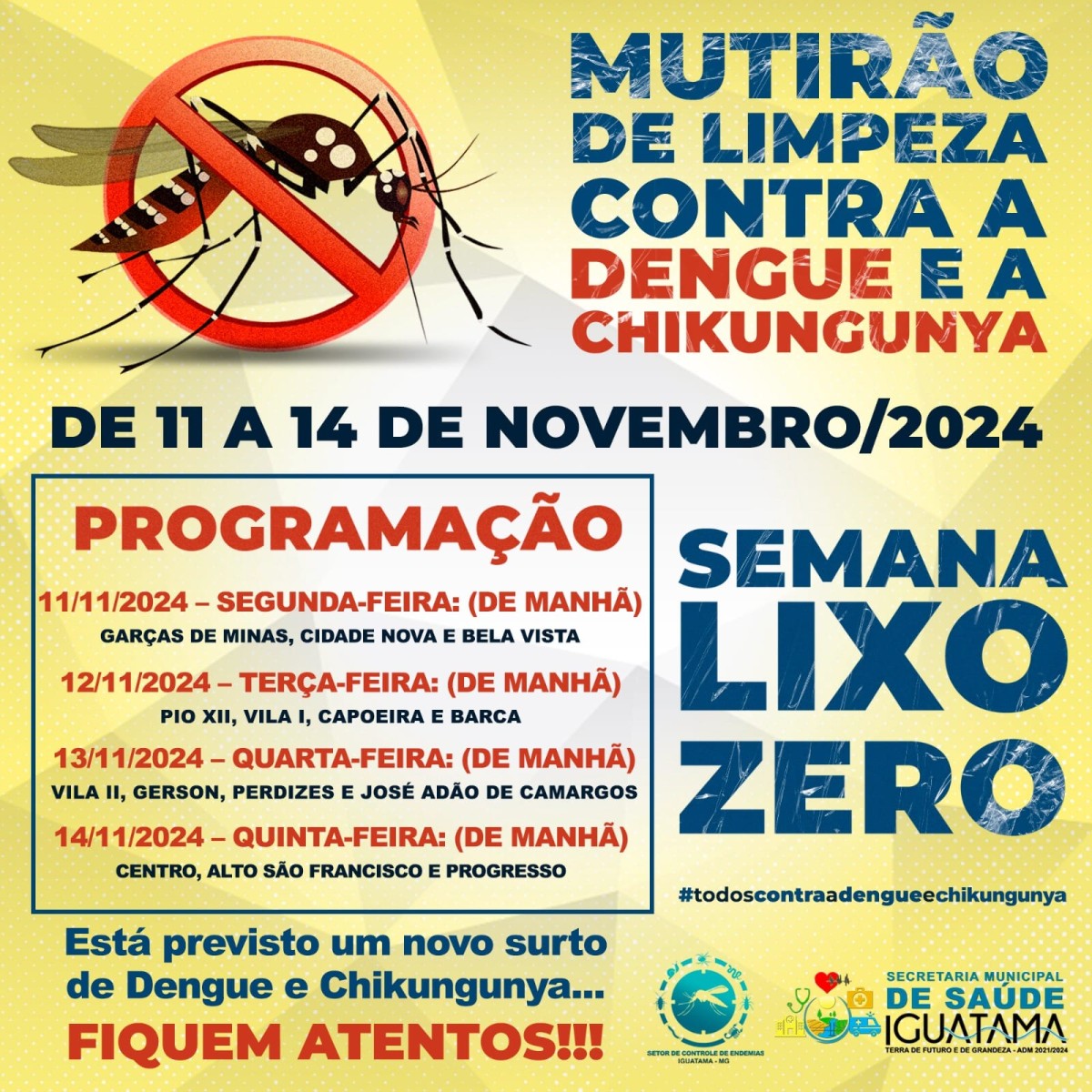 A Prefeitura de Iguatama juntamente com a secretaria de saúde pede a toda população, que verifique suas residência diariamente e elimine os criadouros do Aedes Aegypti.