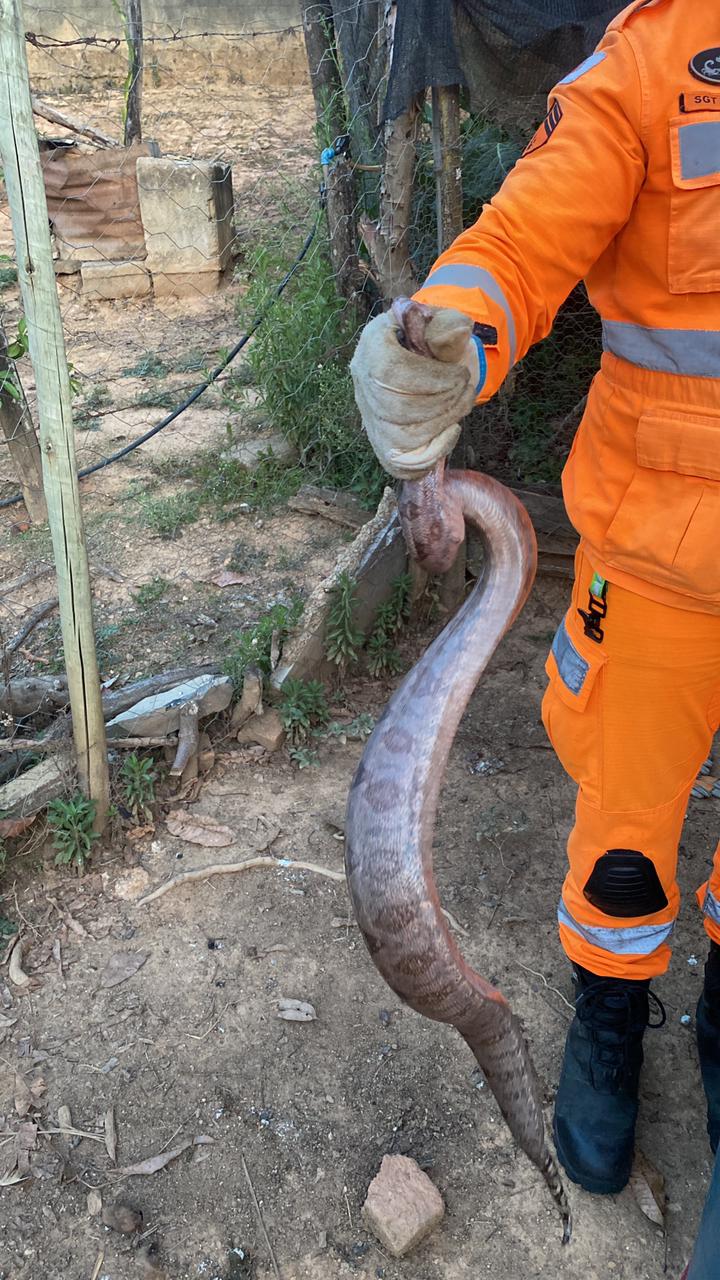 Na tarde de quinta-feira (16), o Corpo de Bombeiros Militar foi acionado para atender a uma ocorrência de captura de animal em risco em uma residência. No local, os militares se depararam com uma jibóia de aproximadamente 1,5 metro de comprimento que estava dentro de um galinheiro.