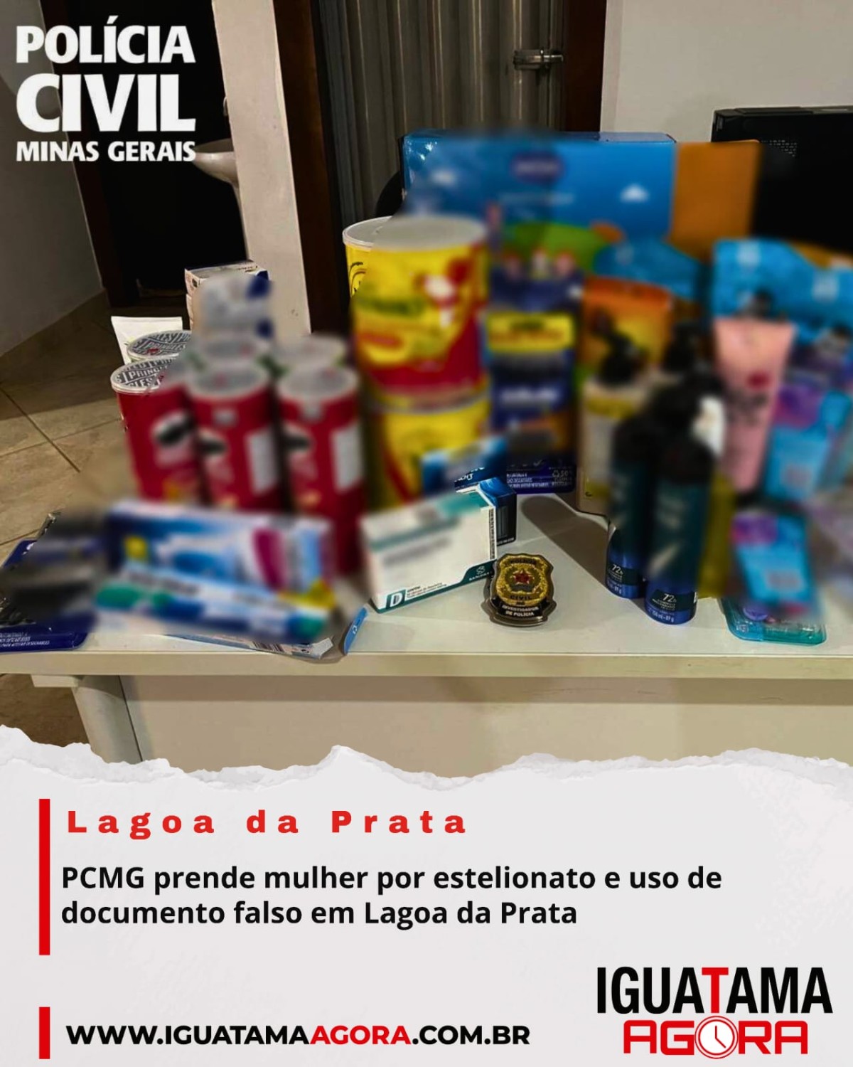 No local, foram apreendidos diversos produtos adquiridos de forma fraudulenta, entre eles piscina inflável, desodorantes, aparelhos de barbear, shampoo, hidratantes, sérum, batatas tipo chips, leite em pó, sabonetes, suplemento alimentar e teste de gravidez.