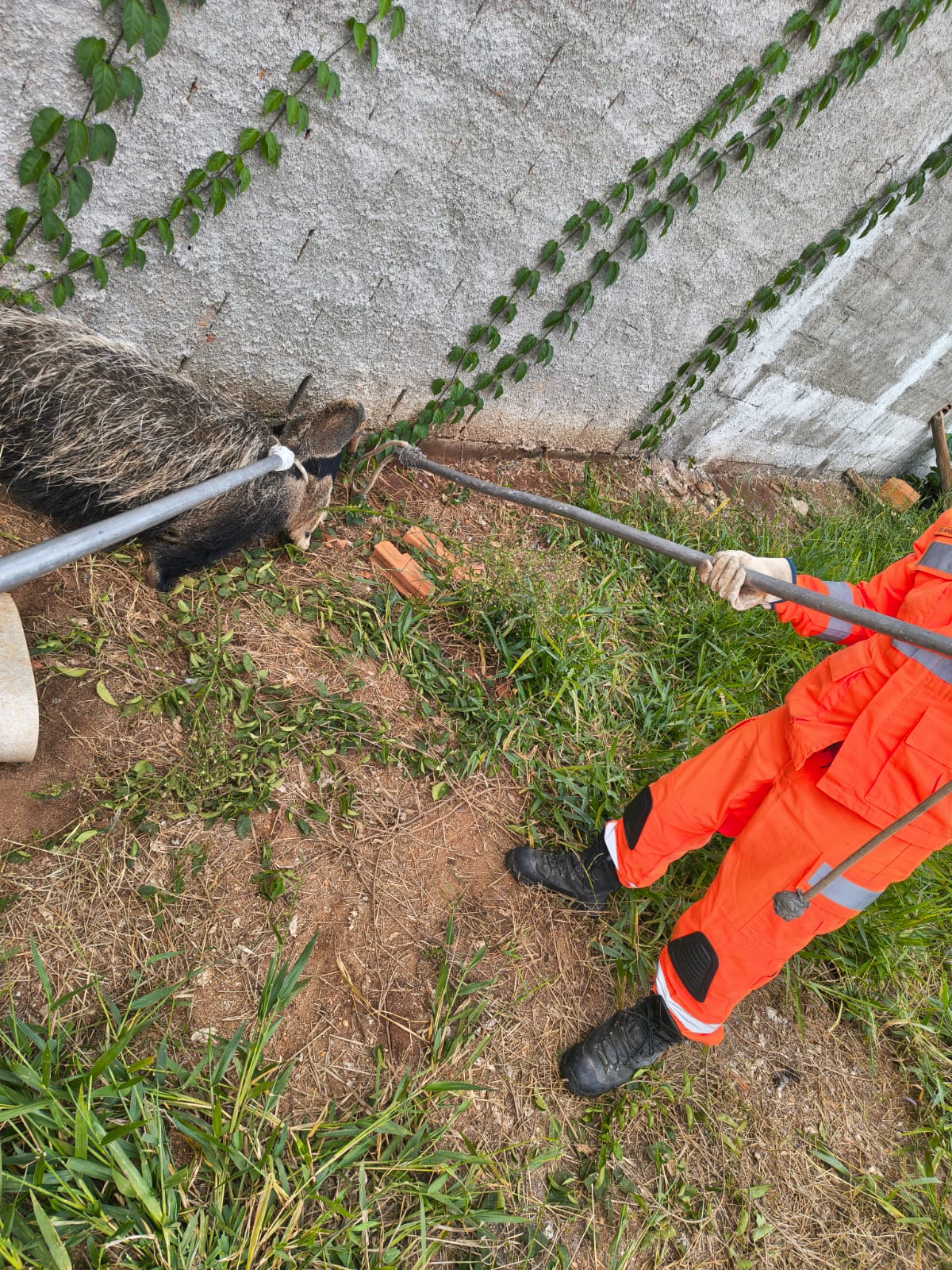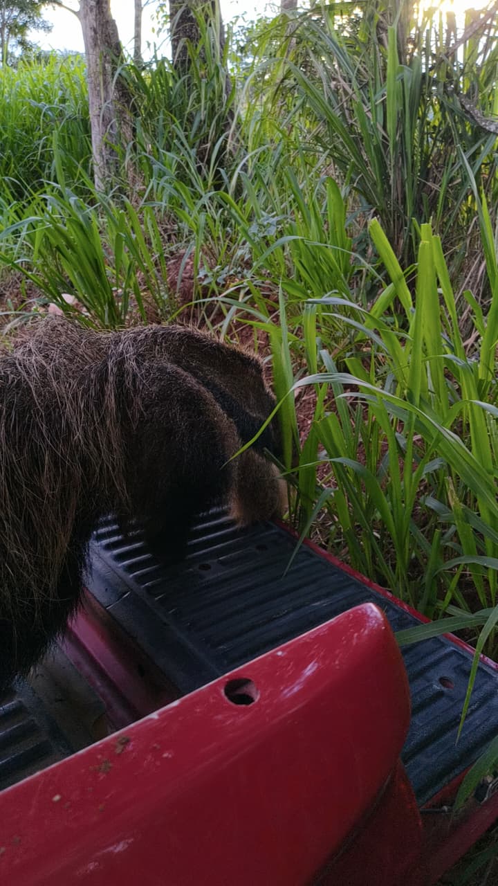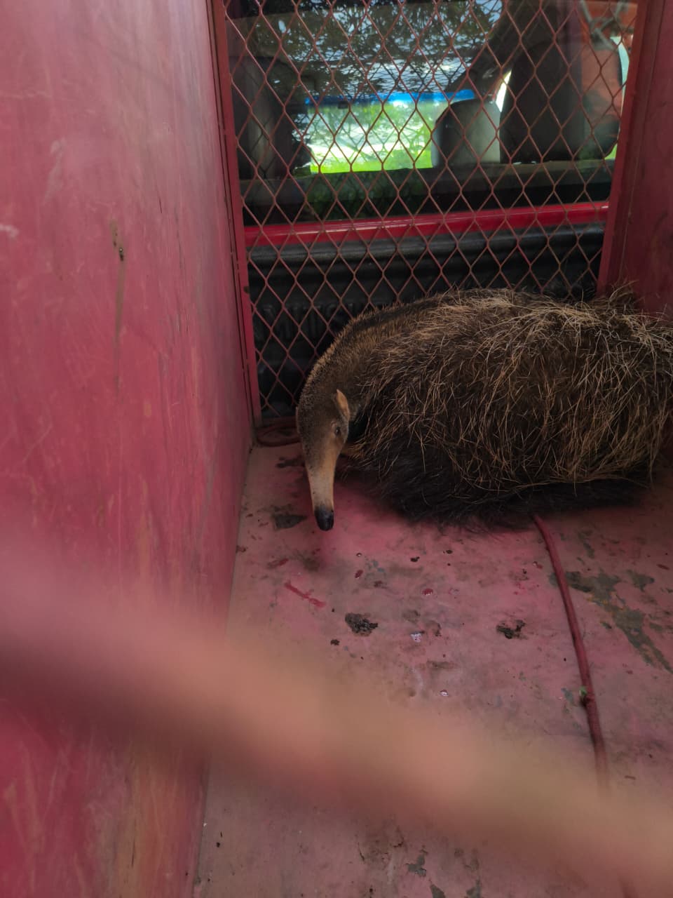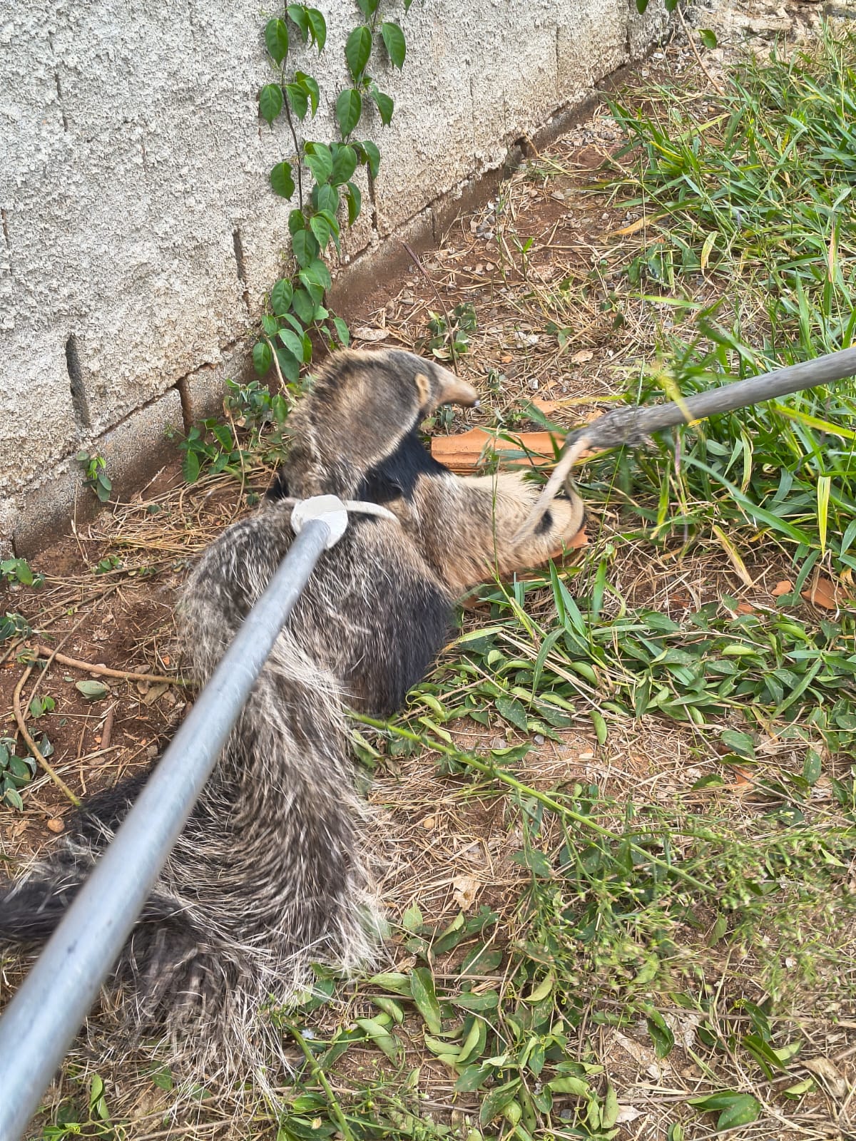 Uma moradora da região, preocupada com a segurança do animal, conseguiu contê-lo temporariamente em um lote até a chegada da guarnição. No local, os bombeiros realizaram a captura do tamanduá utilizando equipamentos de proteção individual e materiais adequados, garantindo a segurança da equipe e do animal.