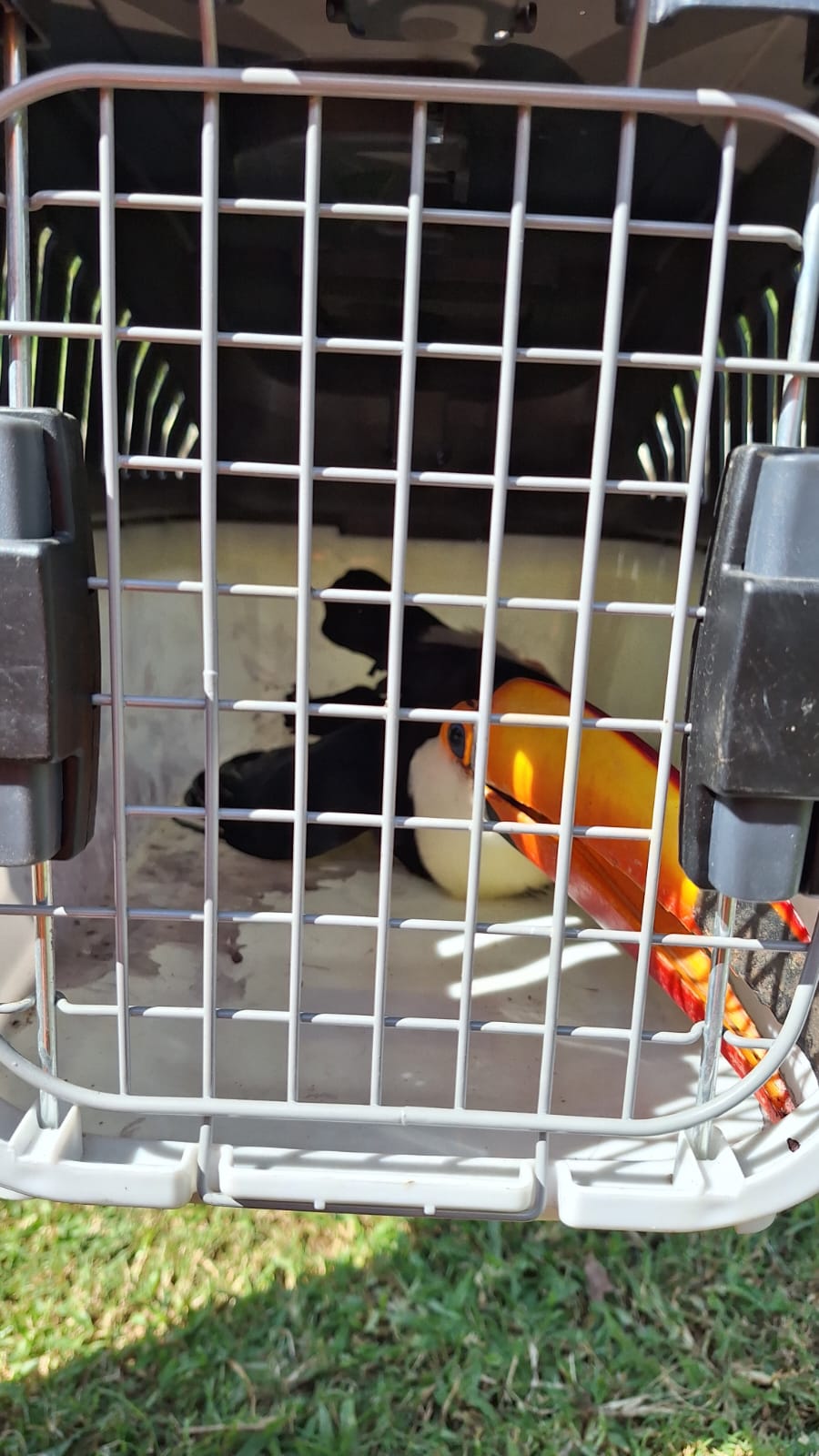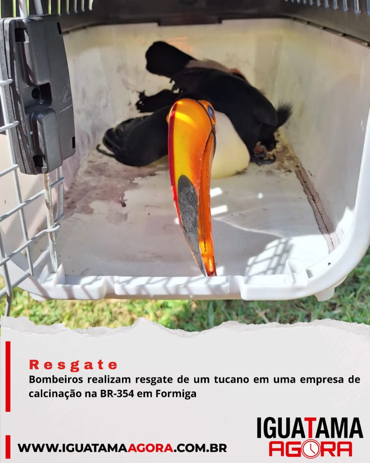 Na tarde desta quinta-feira (19/02), militares da 4ª Companhia de Bombeiros realizaram o resgate de um tucano em uma empresa de calcinação na região. A ave foi encontrada na área de estacionamento externo da empresa, apresentando sinais de fratura em uma das asas.