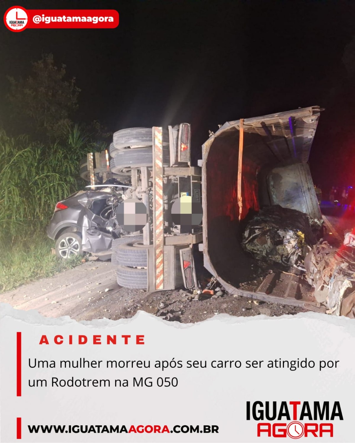 Conforme apurado no local e versão do envolvido, o condutor de 38 anos da combinação veicular, rodotrem, IVECO que trancionava 03 semi-reboques/Dolly seguia pela rodovia MG 050 sentido Formiga/MG a Divinópolis/MG deparou com um caminhão danificado parado parcialmente sobre uma faixa de trânsito, momento em que ao desviar-se deste, a última composição e o Dolly perderam o controle direcional tombando sobre a pista, arrastando e atingido o veículo Honda HRV conduzido por uma mulher de 41 anos que seguia em sentido contrário, tendo esta ficado presa às ferragens.