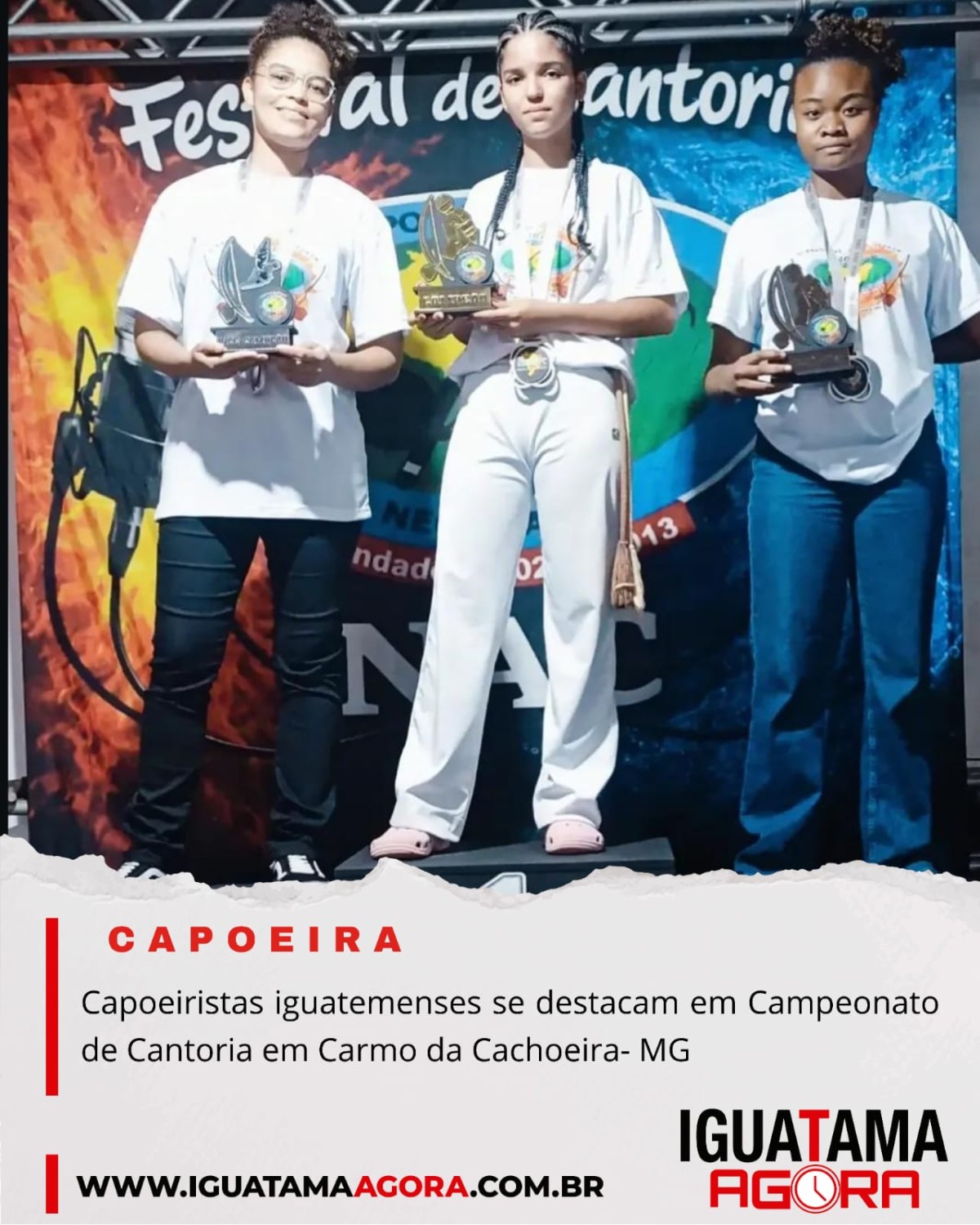 A capoeirista iguatamense Kaliandra Lomônaco ganhou dois prêmios em duas categorias. Ganhando em primeiro lugar com a melhor interpretação da música " Sou Caminhador- Boa Voz" e em terceiro lugar com sua música autoral "Mulher é força na capoeira".
