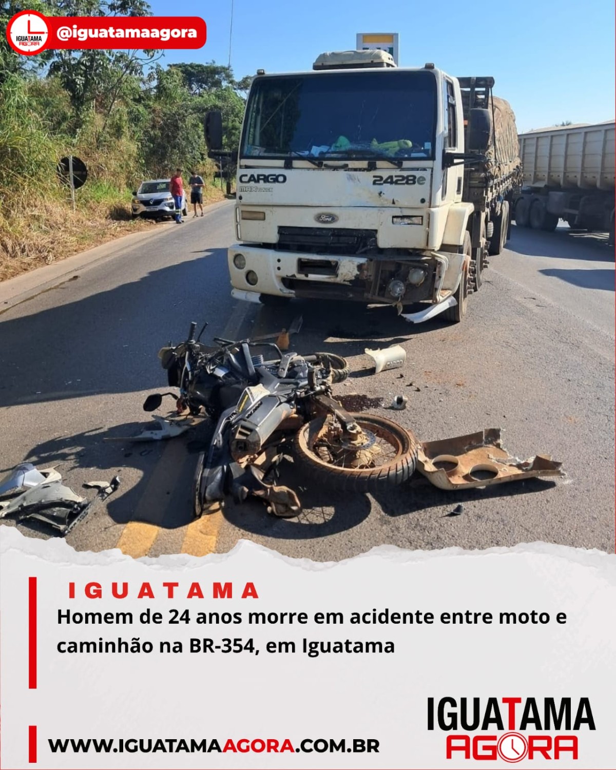 Segundo versão do condutor do veículo Caminhão Ford Cargo 2428 E, de 51 anos, ao sair de um posto de combustíveis, no sentido Iguatama a Arcos, deparou com uma motocicleta Honda XRE 300 Sahara, conduzida por um homem de 24 anos, o qual estaria realizando uma ultrapassagem em local proibido, causando a colisão frontal.