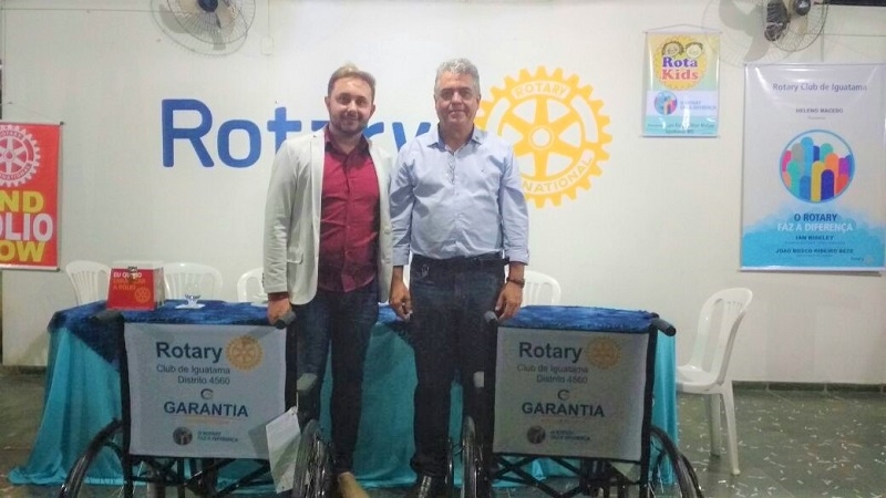 Na mesma reunião, o Secretário de Saúde de Iguatama Sr. Alexandre Correia recebeu a doação de duas cadeiras de rodas das mãos do Presidente Heleno Macedo. Alexandre agradeceu a doação, e lembrou que o Hospital já possui outras cadeiras que foram doadas pelo Rotary, e que elas são muito úteis ao do Hospital.