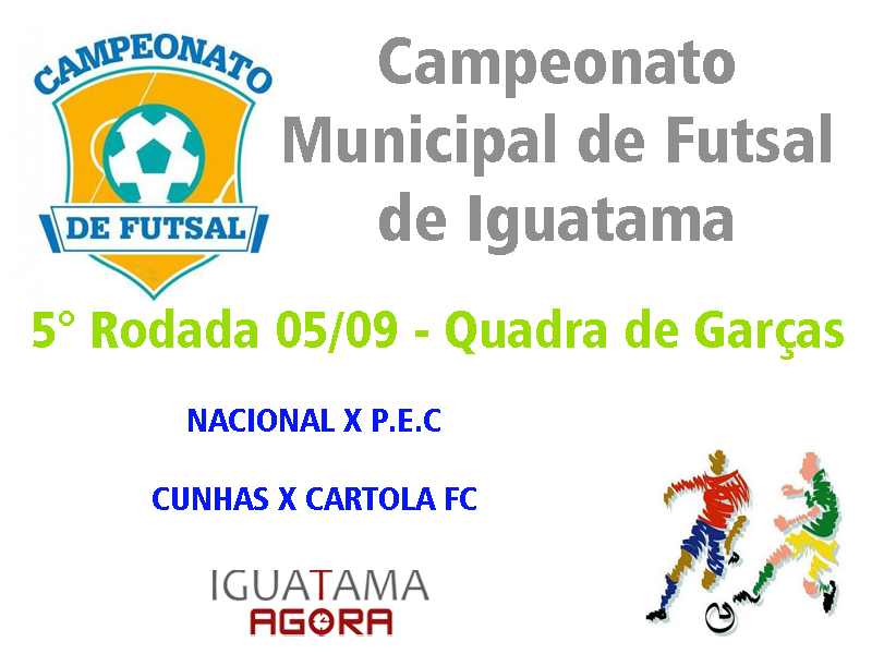 Acontece hoje na quadra de Garças a quinta rodada do Campeonato Municipal de Futsal de Iguatama, uma noite de muito futsal e emoção para os quatro times que disputam a rodada.