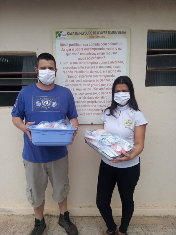 O Rotary Club de Iguatama, juntamente com ASR, Interact e Rotakids, pensando nos grupos de risco da cidade, estão disponibilizado um Kit composto por uma máscara reutilizável (camada dupla de tricoline e uma camada interna de TNT) que é a recomendação pela OMS, um sabonete para higienização das mãos e um manual de instruções.