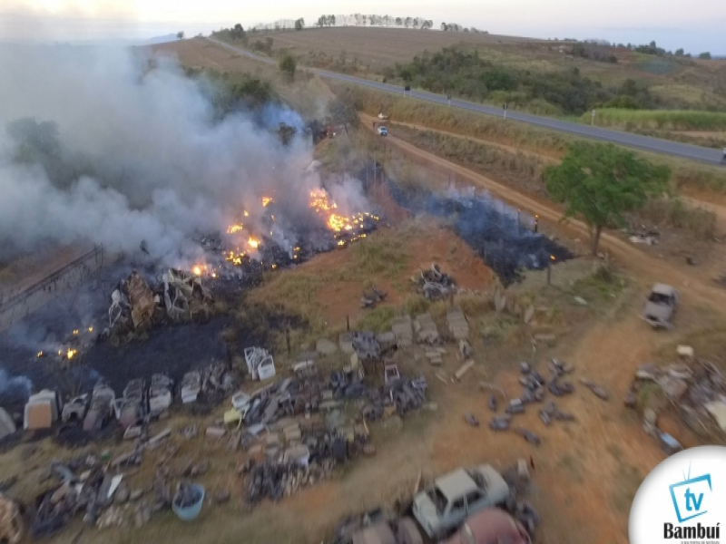 Um incêndio aparentemente criminoso queimou parte de um depósito de sucata de veículos na tarde desta segunda-feira (11), próximo ao Lixão Municipal de Bambuí. O fogo se espalhou e atingiu os dormentes da linha férrea.