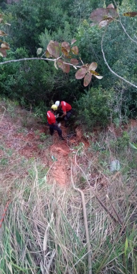 Na tarde da última terça feira (28), uma equipe do 5º Pelotão de Bombeiros de Formiga realizou o salvamento de um novilho que havia caído em uma grota com aproximadamente 8 metros de profundidade no Distrito de Padre Trindade, que fica na Zona Rural de Formiga.
