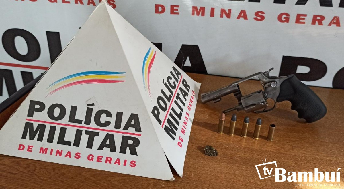 Na residência os militares encontraram uma grande quantidade de drogas, uma arma de fogo, munições e pés de maconha