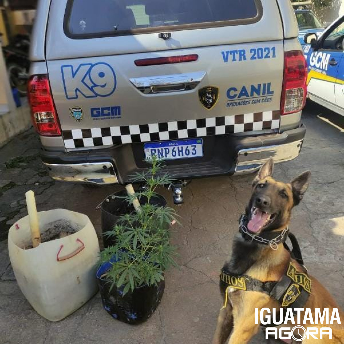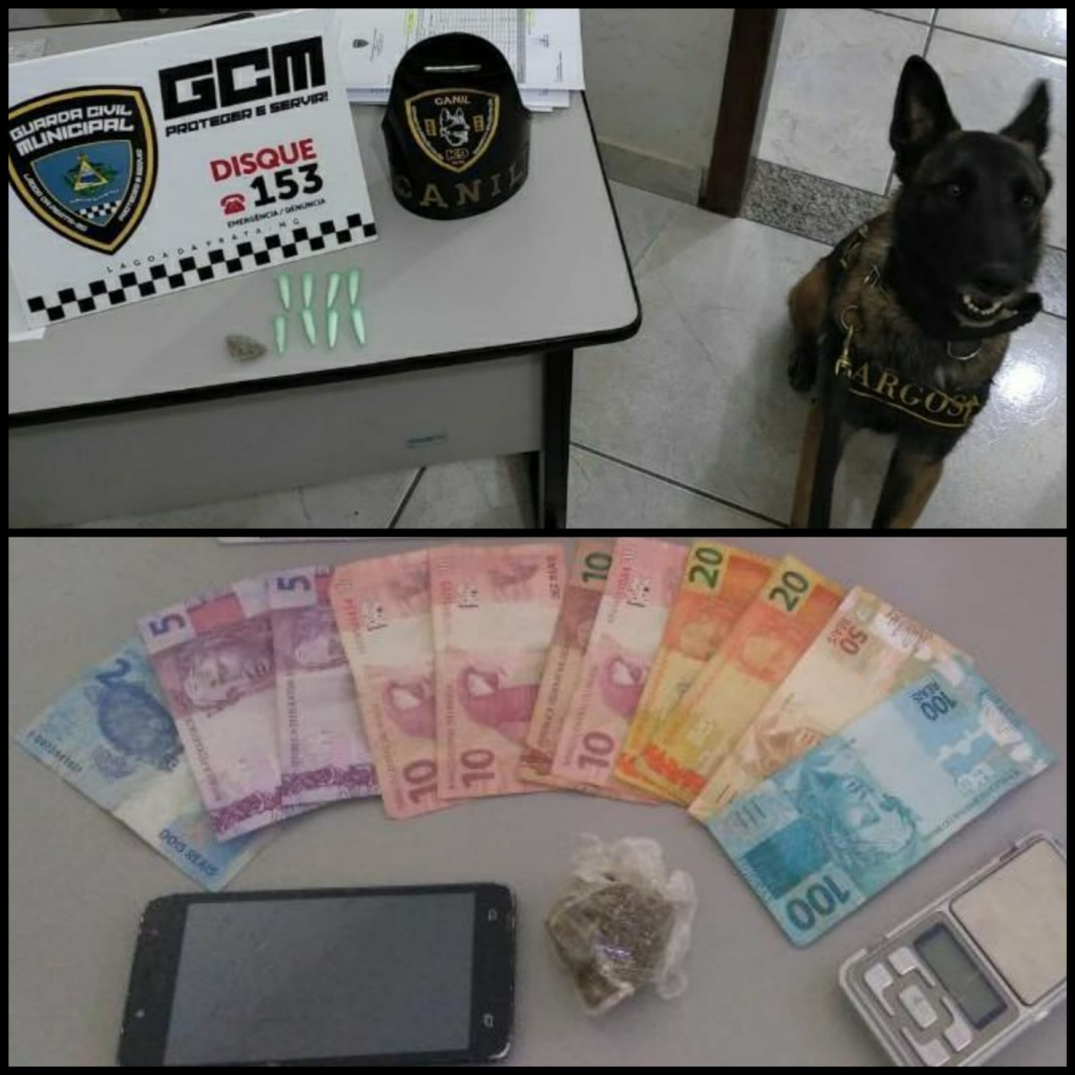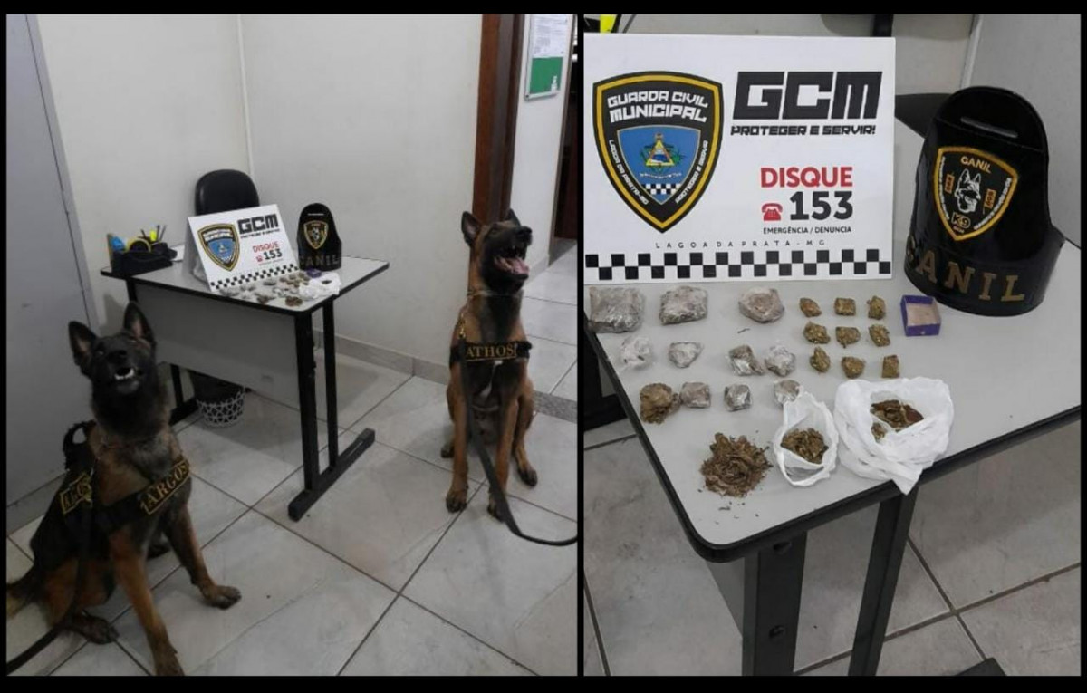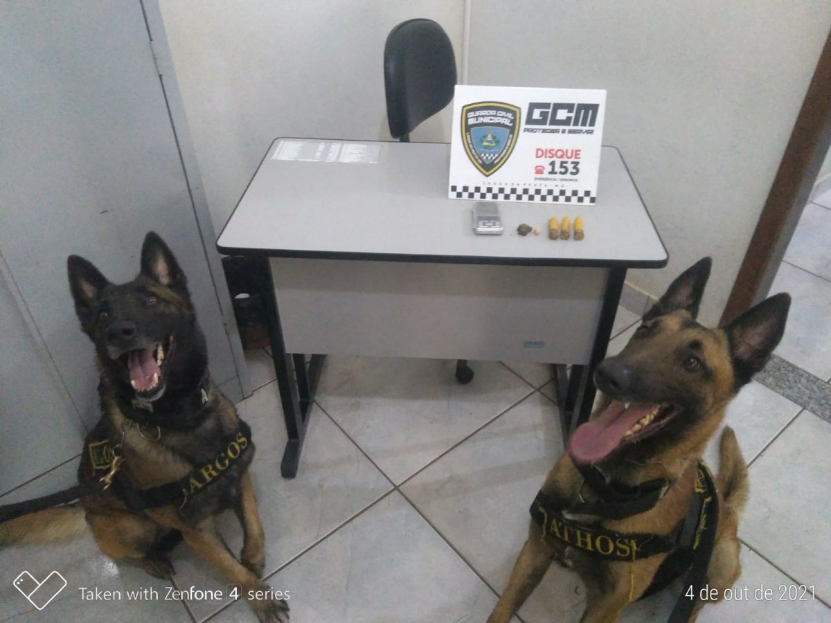 O cão Argos deu sinal de positivo e “flechou” localizando uma pedra de substância análoga ao crack e 600g de substância análoga a maconha