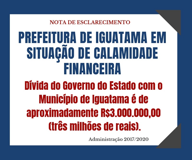 NOTA INFORMATIVA: PREFEITURA DE IGUATAMA EM SITUAÇÃO DE CALAMIDADE FINANCEIRA