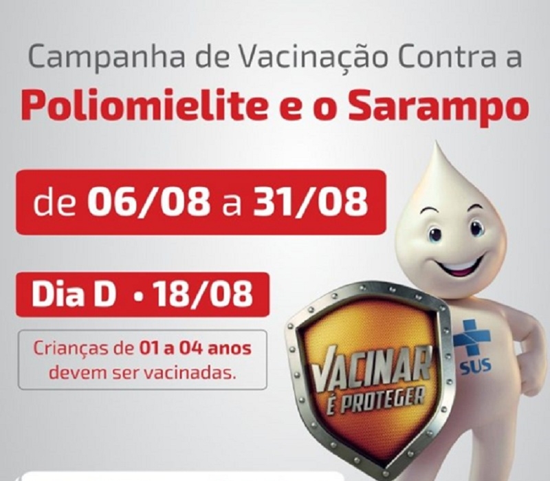 Campanha de multivacinação contra Sarampo, Poliomelite, HPV e Meningite acontece amanhã de 9h às 16h.