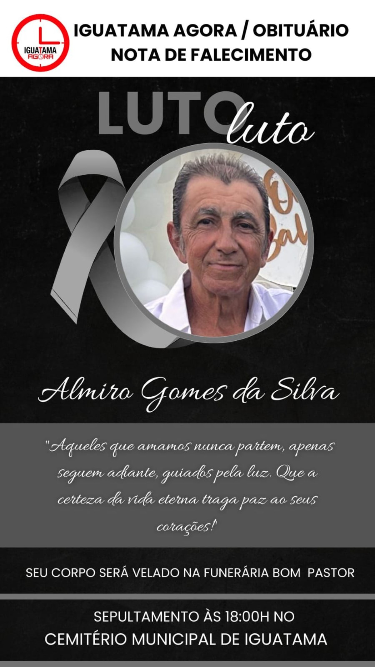 A Funerária Bom Pastor se despede hoje do Sr. Almir, esposa: Maria Aparecida silva, filhos: Bruno, Jonas e Josiane, convidam para sua despedida que está acontecendo na funerária Bom Pastor.